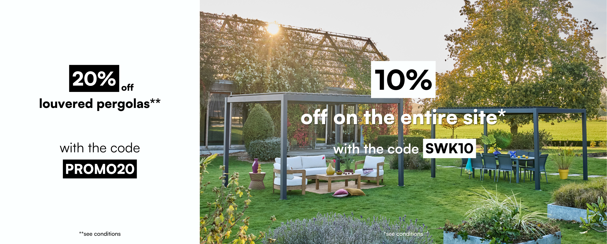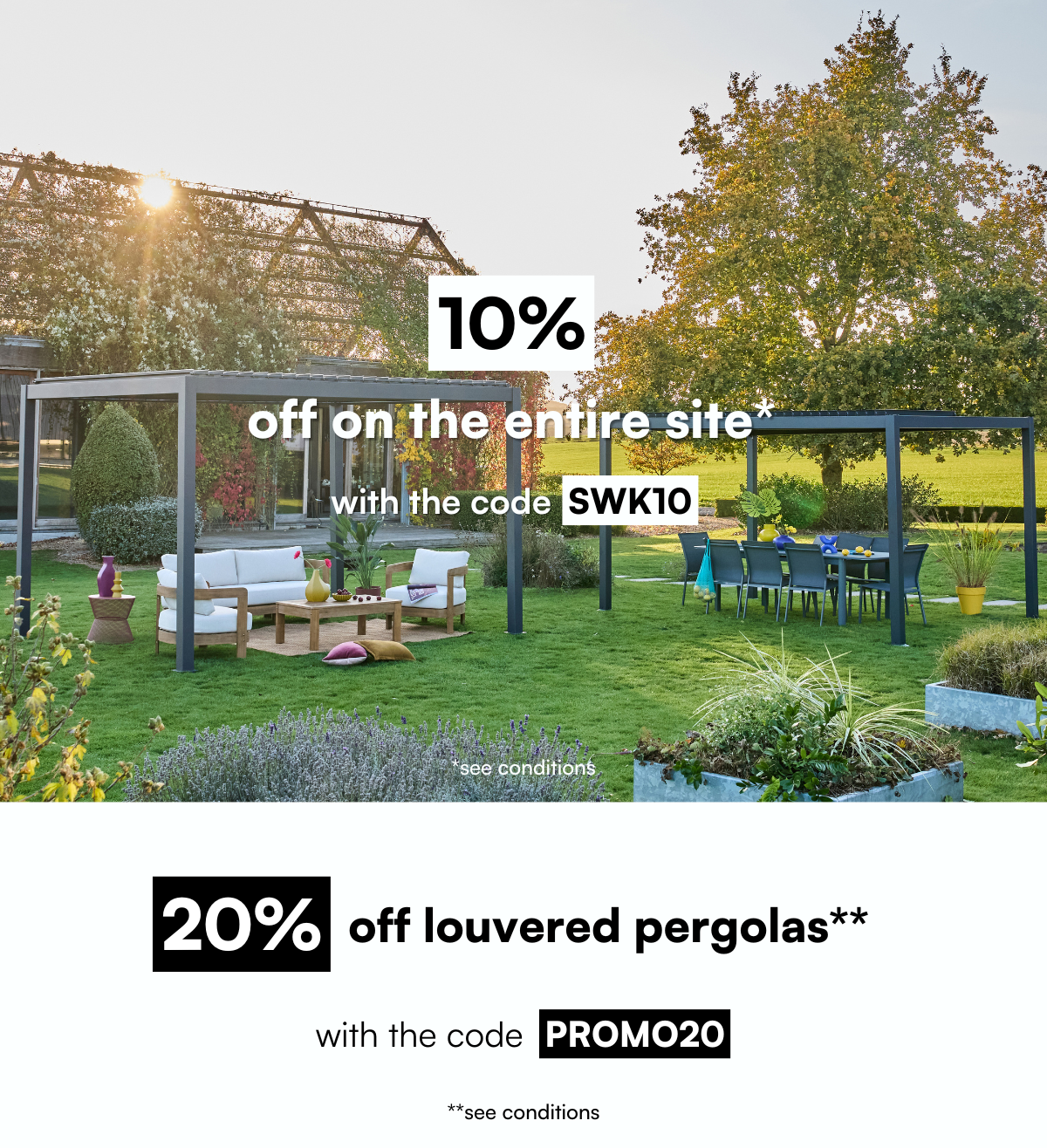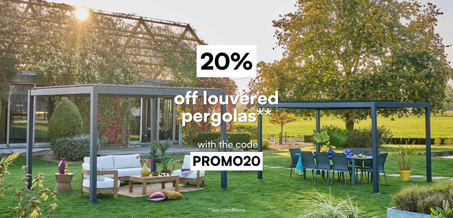 Make the most of your terrace or garden, you can find a great selection of pergolas and gazebos in our online shop. Easy to assemble and disassemble, they’re the perfect shaded spot to relax. Whether bioclimatic, curtained or classic, no doubts that at sweeek you’ll find the perfect pergola for you.