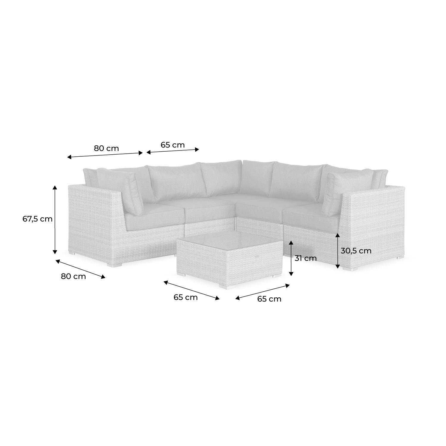 The Vittoria garden set is designed to be practical and easily arranged according to your needs and preferences. The furniture modules are interchangeable and easy to move, and connectors are included to attach the different modules together.
