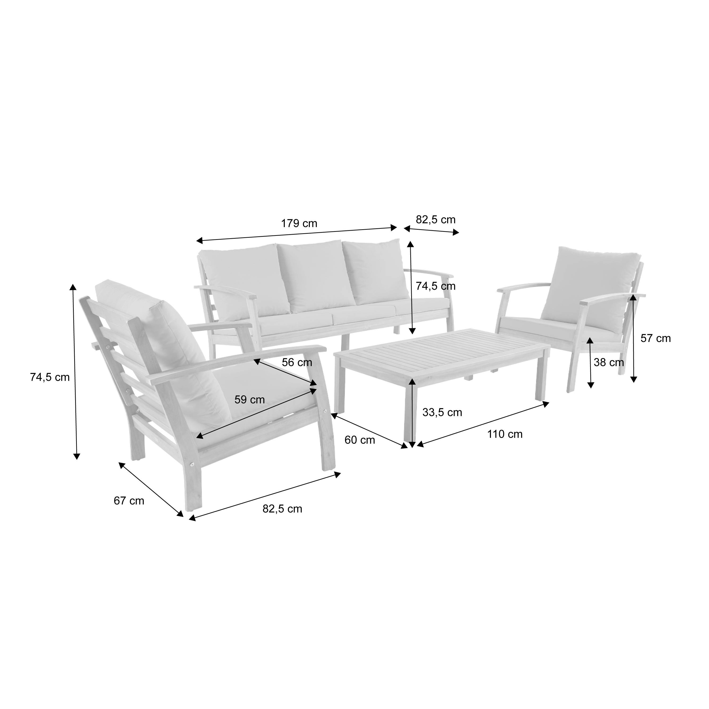 5-seater acacia wood garden lounge set