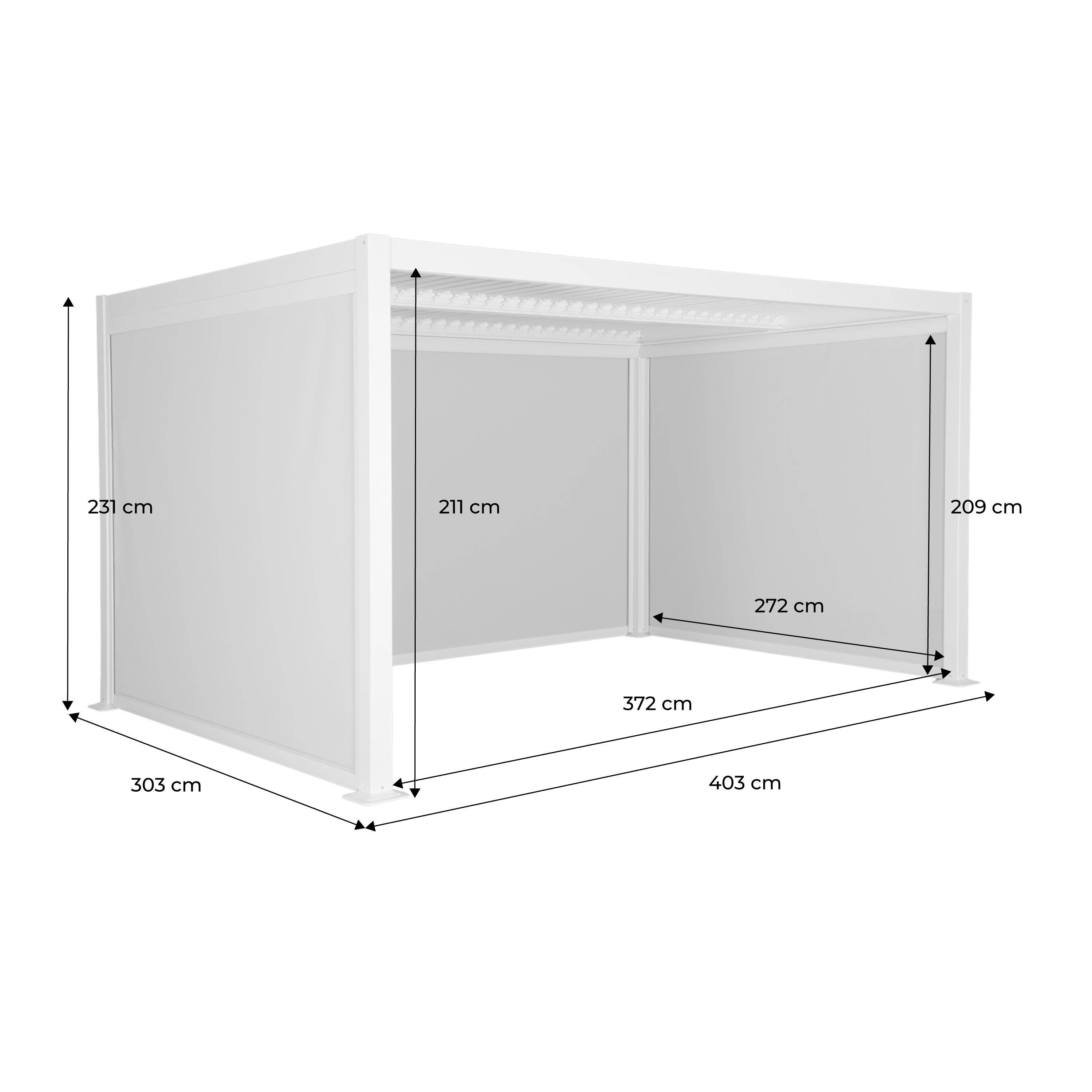 Enjoy pleasant and friendly moments in your garden with the 3 x 4 m bioclimatic Palace pergola. This pergola is designed to adapt to the weather. It protects you from rain in winter and allows you to enjoy the sun in summer while appreciating its shade and freshness. The pergola is a permanent installation as it needs to be anchored in the ground. There's no need to store it away in winter; you can enjoy it all year round.